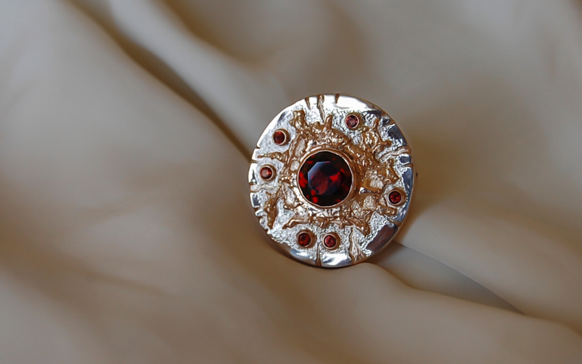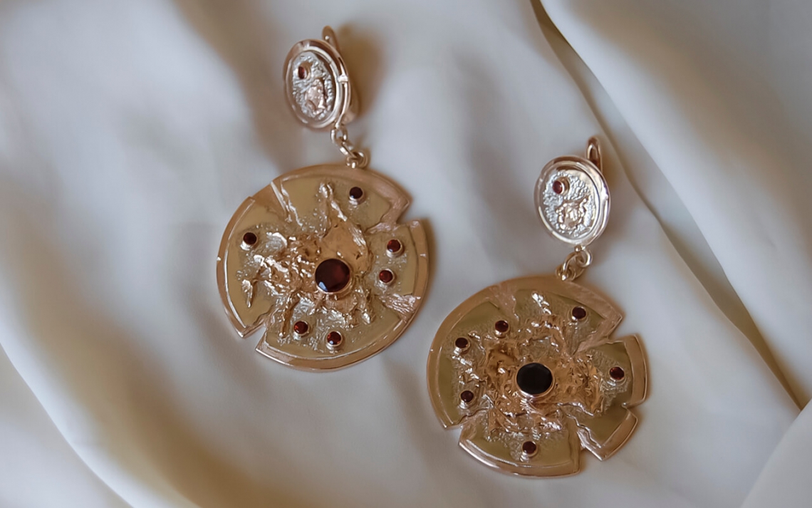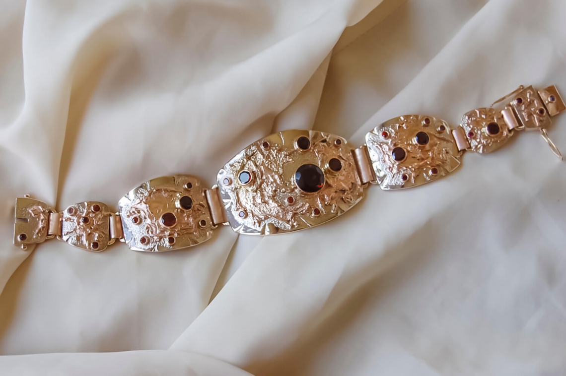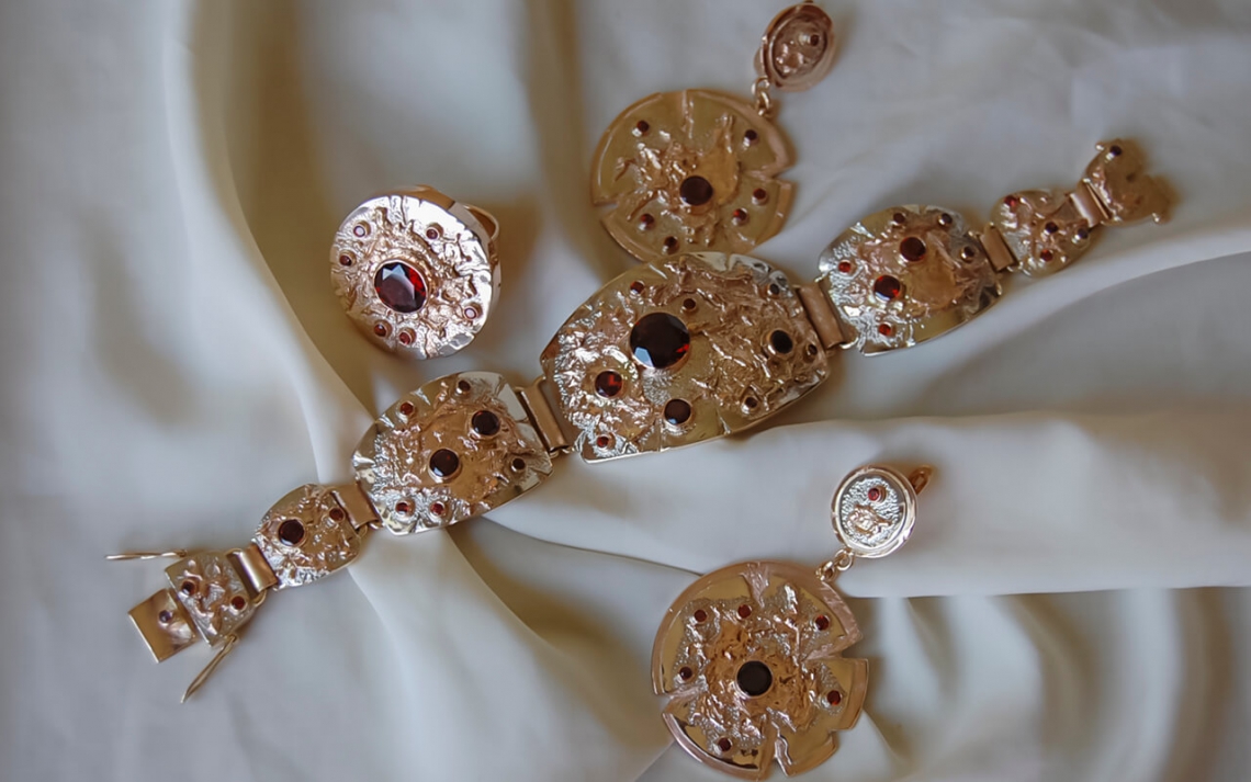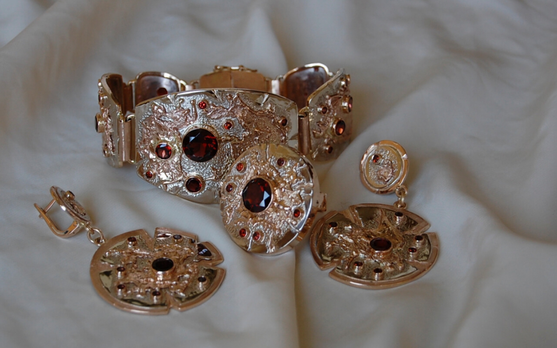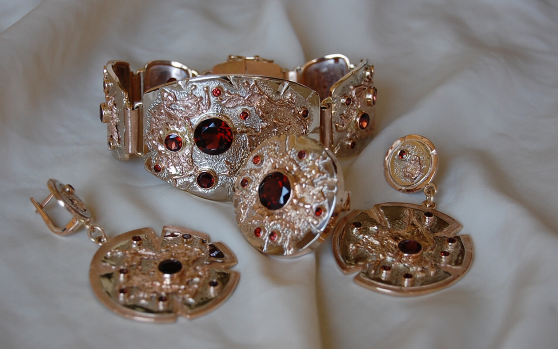 Великолепный комплект из трехцветного золота с гранатами.